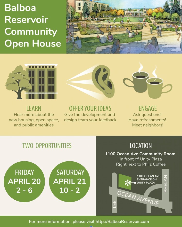 Ridge Lane Neighbors and others will have the opportunity to learn, offer ideas, and engage with the team planning development at the Balboa Reservoir.