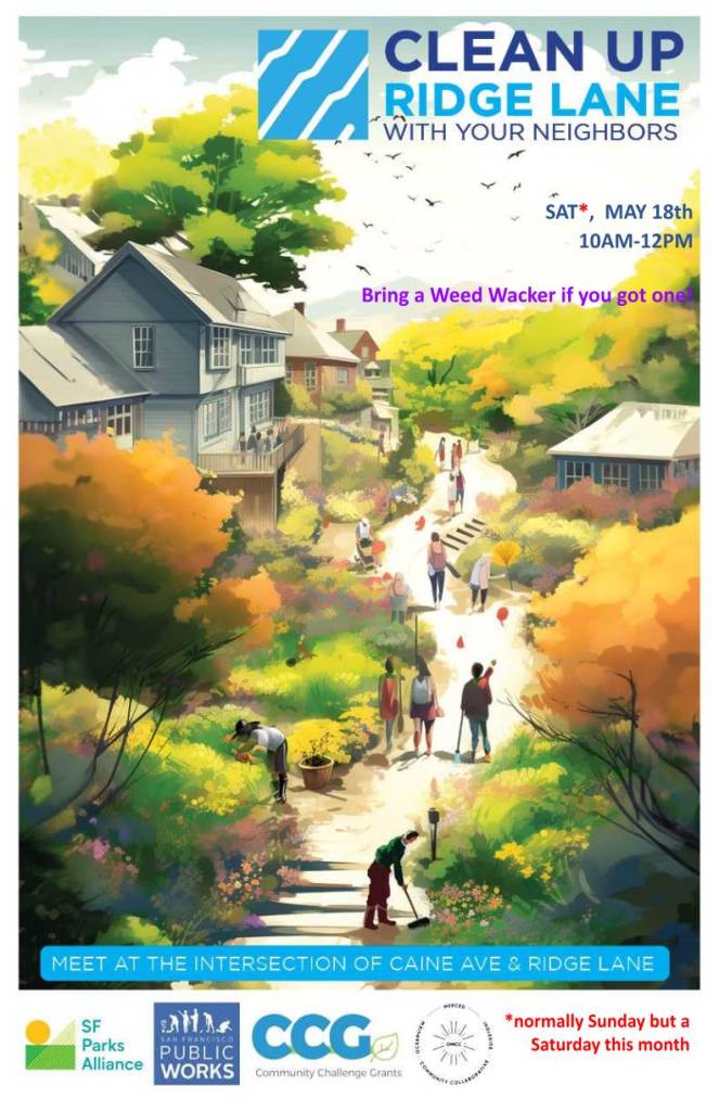 Hi Neighbors! Please join us for the next Ridge Lane clean up day on Saturday, May 18th from 10a – 12n. Meet us at the intersection of Ridge Lane and Majestic Ave. We will be cleaning up the path from the overgrowth so if you have a weed wacker, please bring it! Any other tools please bring — gloves, brooms and compost bags will be provided.