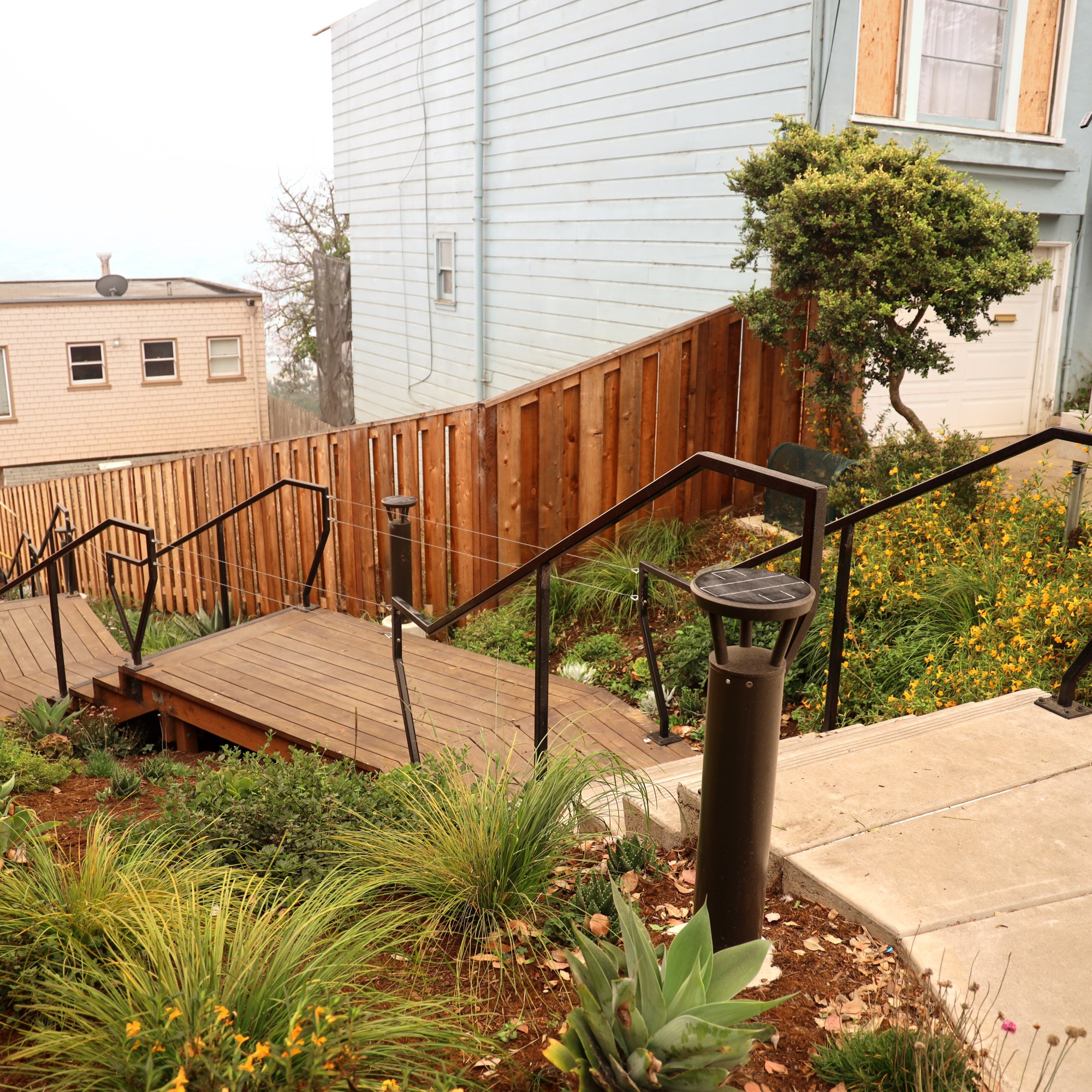 Parcel 4 of Ridge Lane includes the stretch from Caine to San Miguel, which was recently completed and is being enjoyed by neighbors finally able to use the staircase! Click below to see the PDF of Nahal Sohbati & Eric Arneson’s beautiful plans and stop by Parcel 4 to see those plans executed.